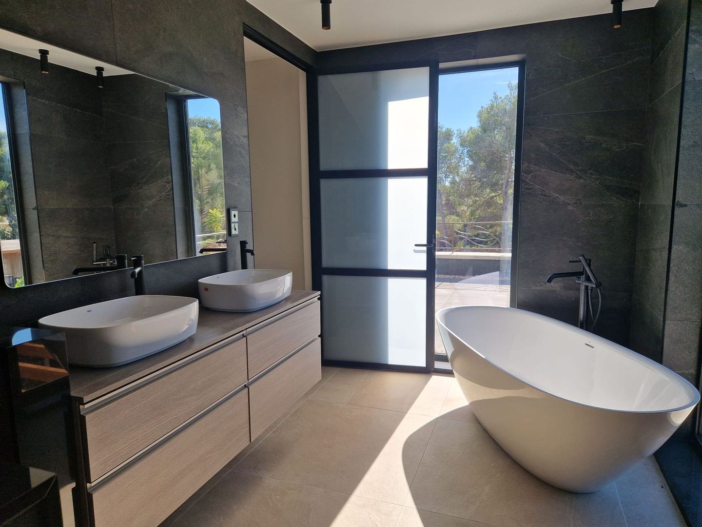 De woning beschikt over 3 ruime slaapkamers, 4 volledige badkamers en een gastentoilet, wat een ideale indeling biedt voor gezinsleven en entertainment. Een vloerverwarmings- en koelsysteem zorgt het hele jaar door voor optimaal comfort, terwijl de vooraf geïnstalleerde smart home-bedrading een eenvoudige integratie van domotica-technologie mogelijk maakt.