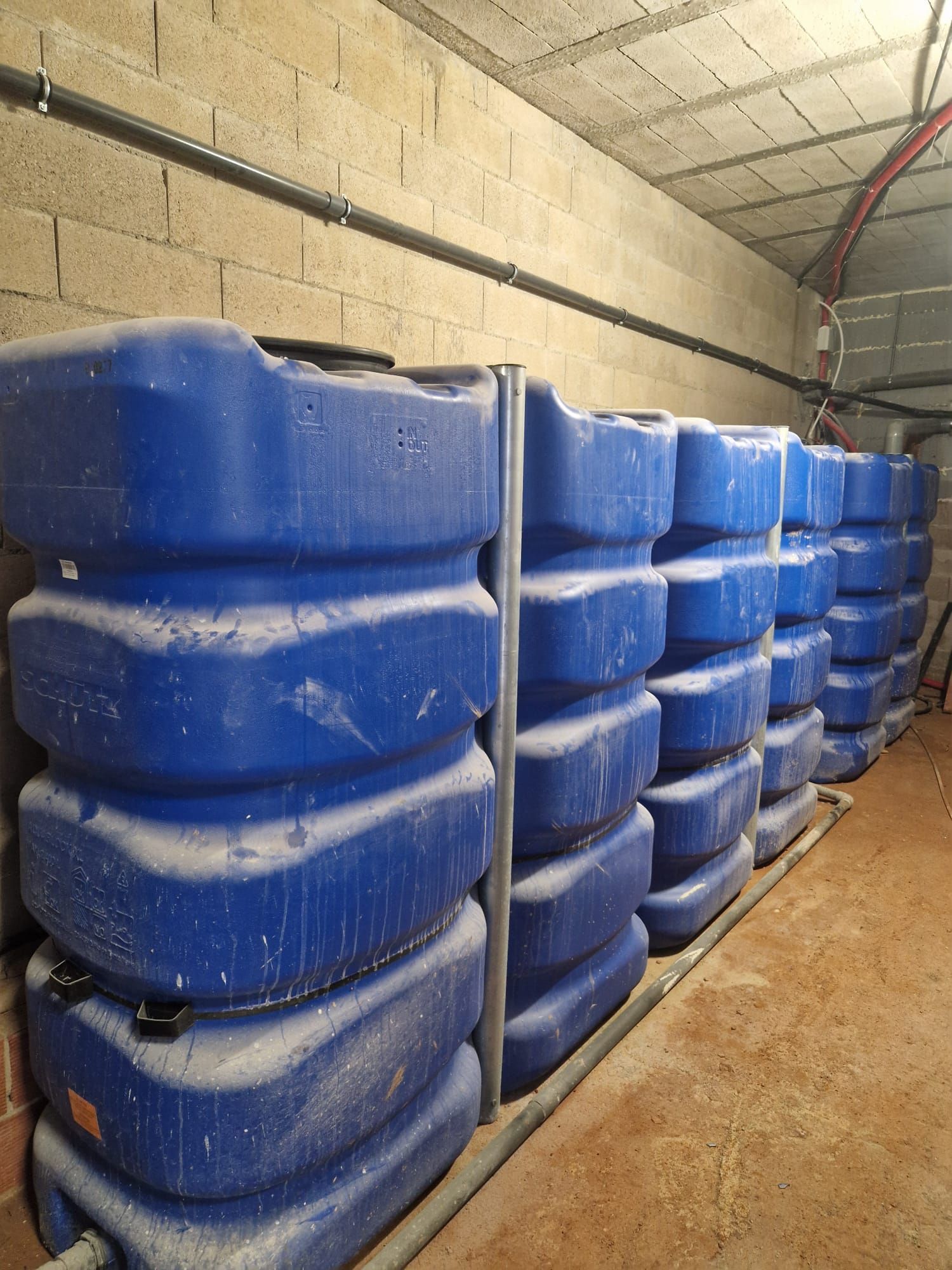 Een regenwatertank van 10.000 liter voor hergebruik voor het besproeien van de tuin.